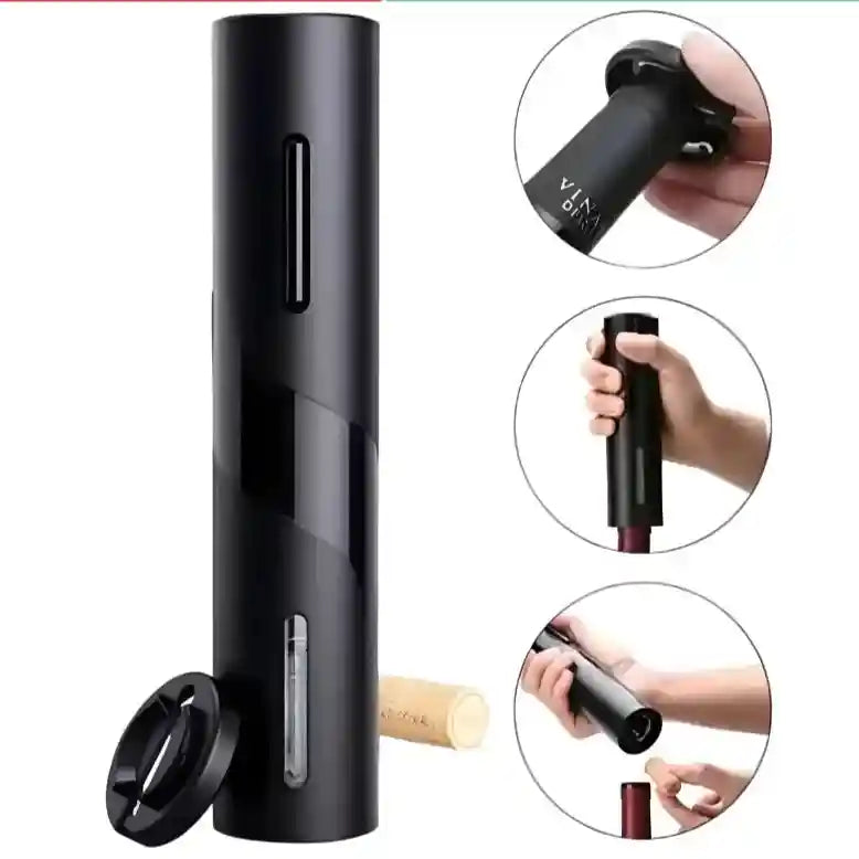 Descubra o Abridor de Vinho Elétrico Automático a Pilhas, a solução perfeita para abrir suas garrafas com facilidade e elegância. Com design moderno e funcionalidade avançada, ele vem acompanhado de um cortador de lacre para garantir uma experiência completa e sem esforço.